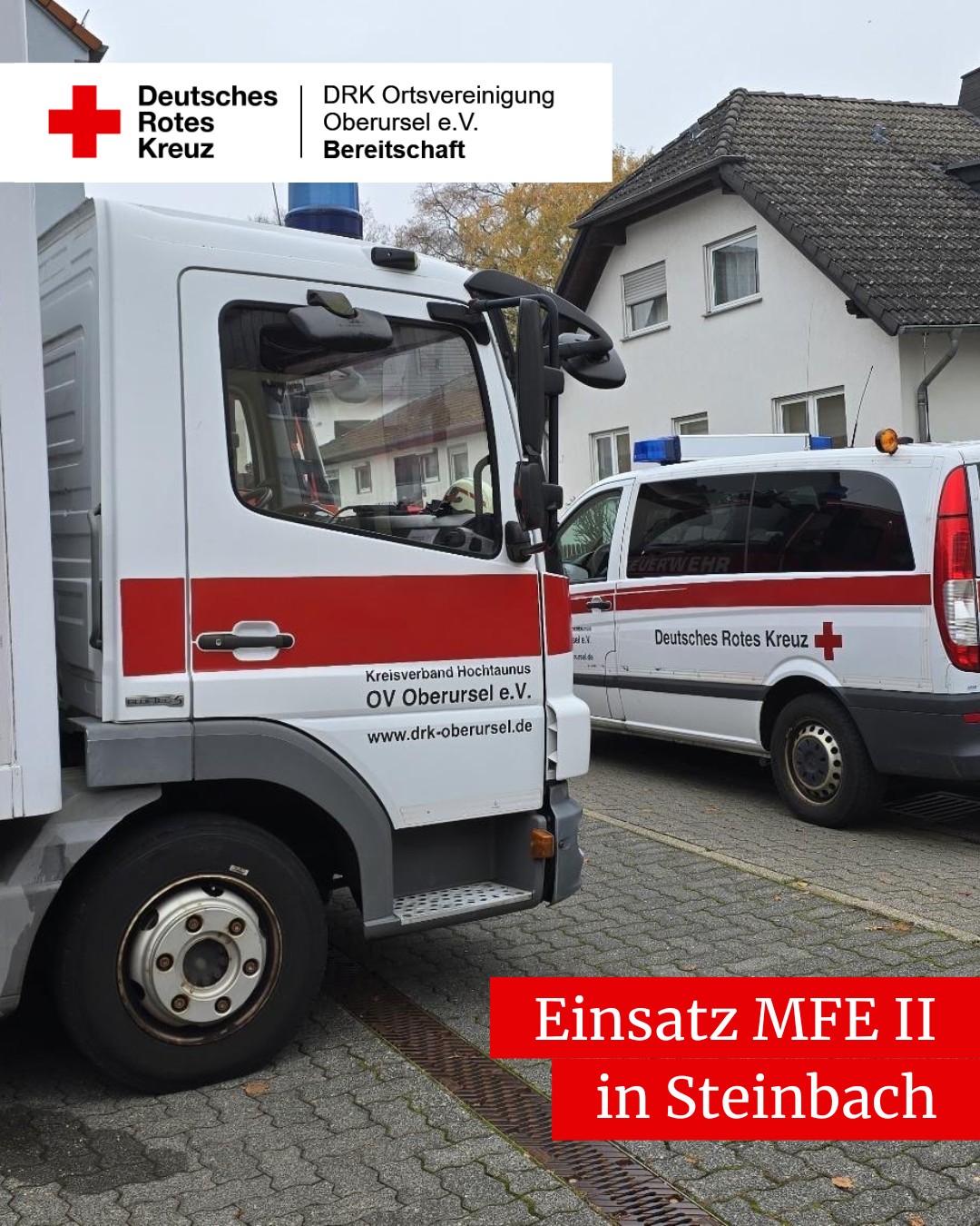 Am Freitag, den 08.11.25, wurden unsere Helferinnen als Teil der MFE II (Multifunktionale Einheit) von der Leitstelle zu einem Betreuungs- und Verpflegungseinsatz nach Steinbach alarmiert. Nach einer Explosion in einem Mehrfamilienhaus galt es, die Bewohnerinnen zu betreuen sowie die dortigen Einsatzkräfte von Feuerwehr und THW zu verpflegen. Insgesamt wurden rund 40 Personen durch unsere Helferinnen verpflegt. Unterstützt wurden wir dabei von der Bergwacht sowie unserem DRK-Fachberater.