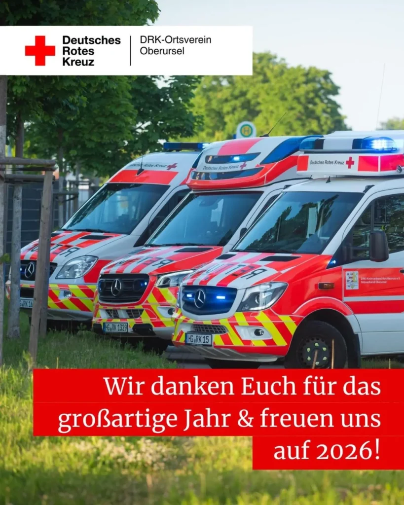 Unser Dank gilt außerdem den DRK-Ortsvereinen sowie den Feuerwehren der Stadt Oberursel und des Hochtaunuskreises für die vertrauensvolle und erfolgreiche Zusammenarbeit. Wir freuen uns auch im Jahr 2026 auf gemeinsame Übungen und ein weiterhin starkes Miteinander in Einsatzsituationen.