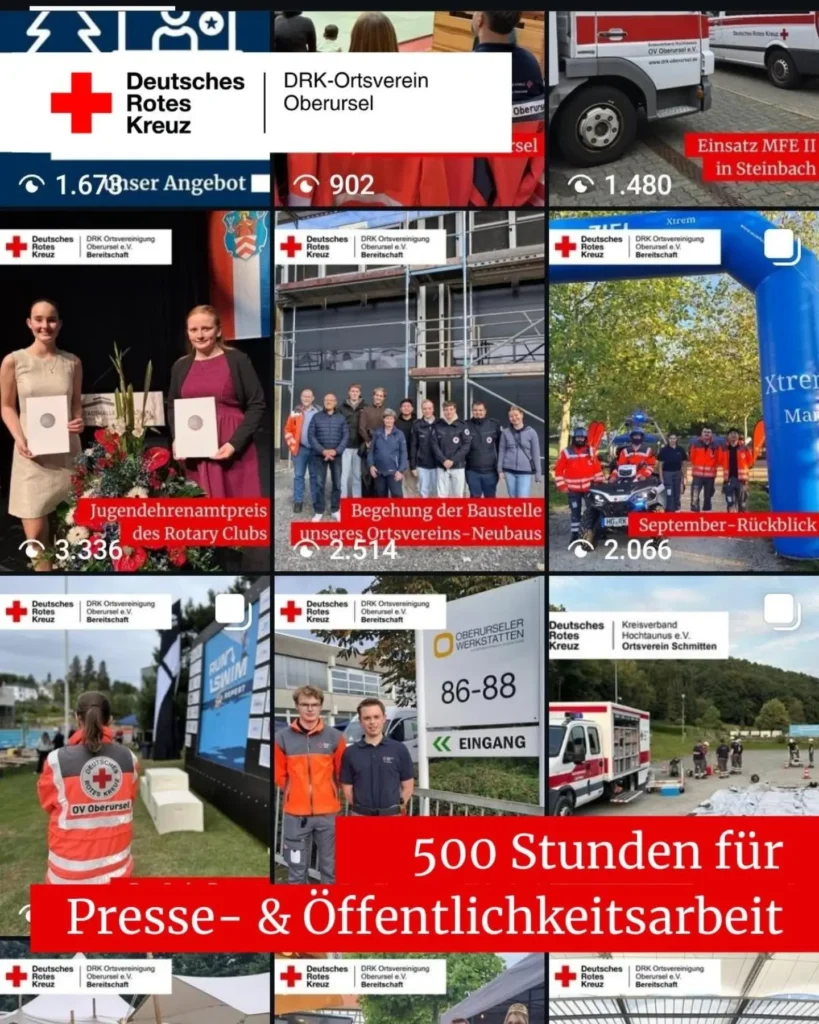 Wir danken allen Helferinnen und Helfern herzlich für die vielen Stunden, die sie ehrenamtlich im DRK-Ortsverein Oberursel geleistet haben. Neben den dokumentierten Einsatzstunden wurden zahlreiche weitere Stunden im Hintergrund erbracht – etwa für Organisation, Vor- und Nachbereitung von Einsätzen und Diensten sowie für die Instandhaltung von Unterkunft und Material.